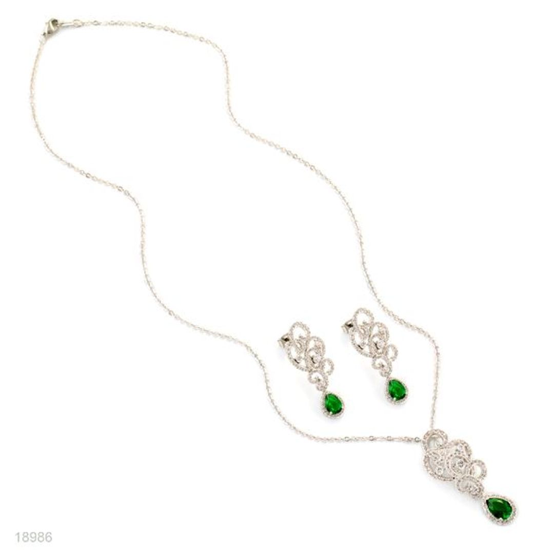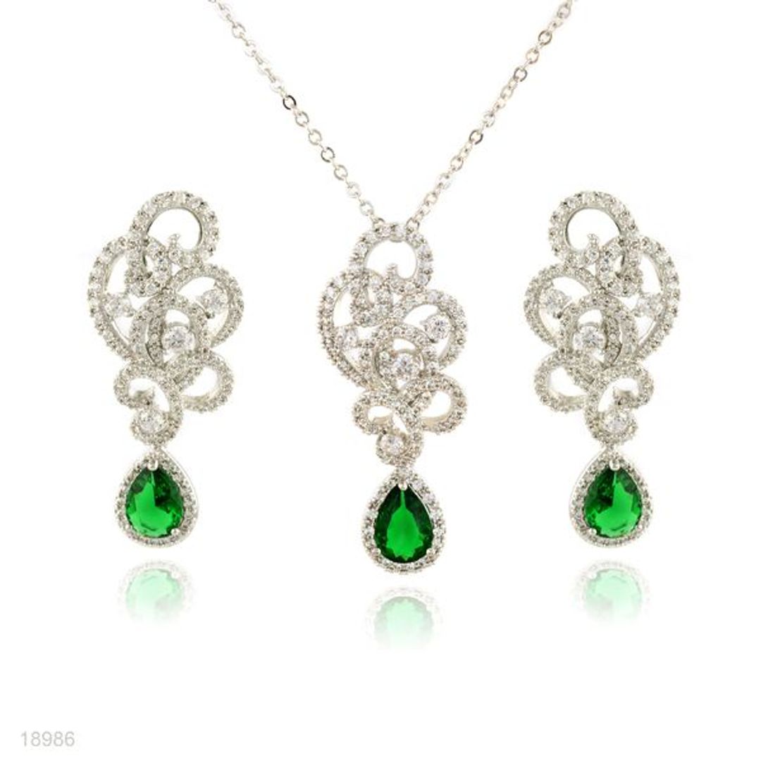| Green | Rhodium Plated (Silver color) | Green | Pendant Set |